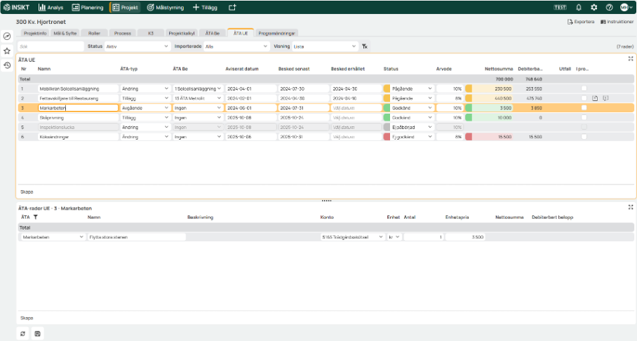 The new function can be used for many different exports. An example is the export of ÄTA notifications in construction projects intended to be sent to a client. Your INSIKT consultant will help you design the export and link it to the right place in the product.