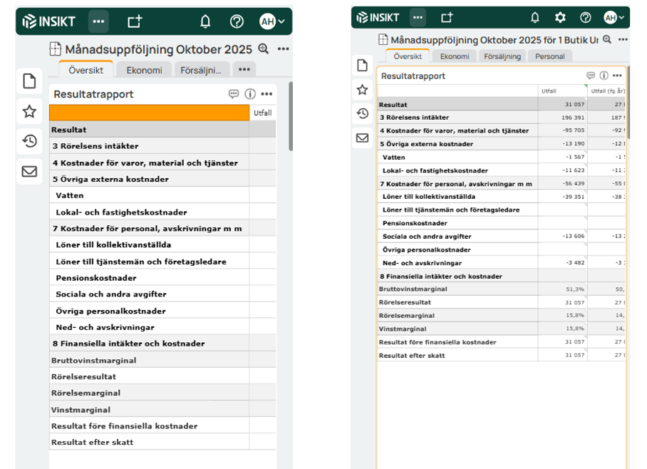 This enables more related content to fit in the same tab instead of having to be separated into two separate tabs. In the next version, this will take further steps and, among other things, also reach Analysis and the reports you can create yourself.