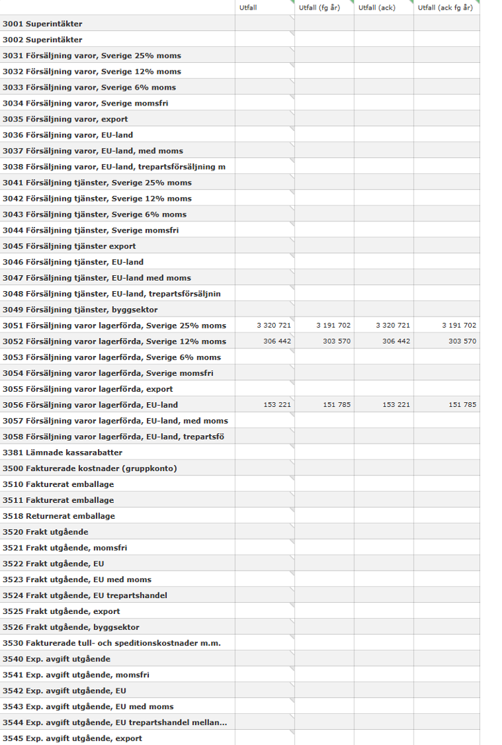 In the image below, we can see that three comments from different product groups have been aggregated upwards to account 3052. We can also see that one of them is set to Vårkampanj even though we have selected All Campaigns in the Campaign extra dimension. The comments are visible even if we choose to hide the underlying ones on that account.