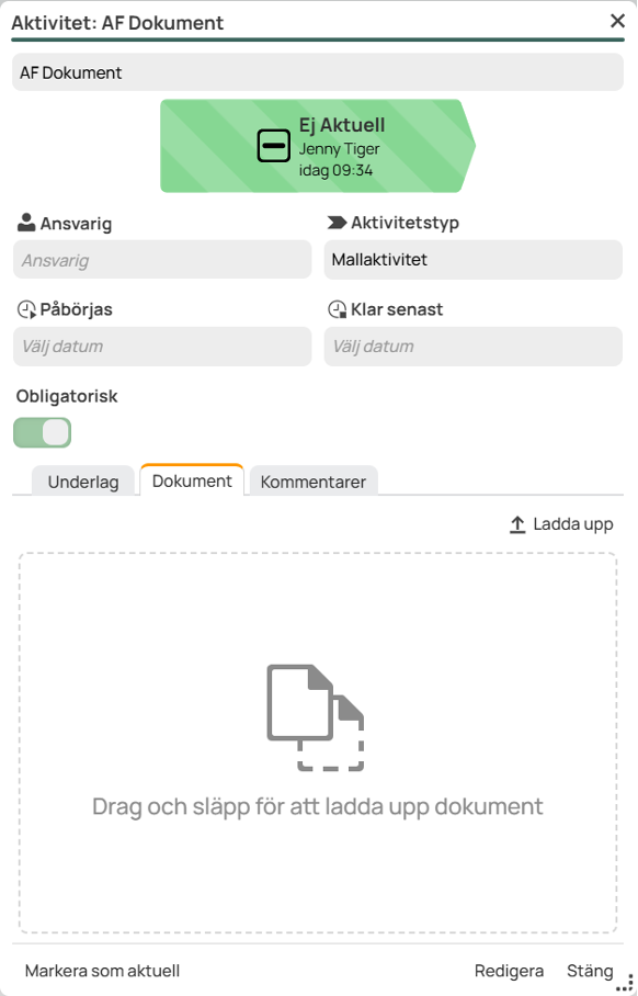 It is now possible for users with the correct permissions to mark the project process activities as “Not applicable” to indicate that the activity is no longer relevant to the project or project phase. An inactive activity remains in the list but with a special appearance for increased traceability, such an activity also does not prevent the phase from continuing.