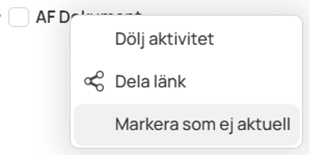 An activity can be marked as current/not current in two ways, either by right-clicking on the activity and selecting “Mark as applicable/not applicable”, or by clicking the corresponding button inside an activity. See the images below for examples: